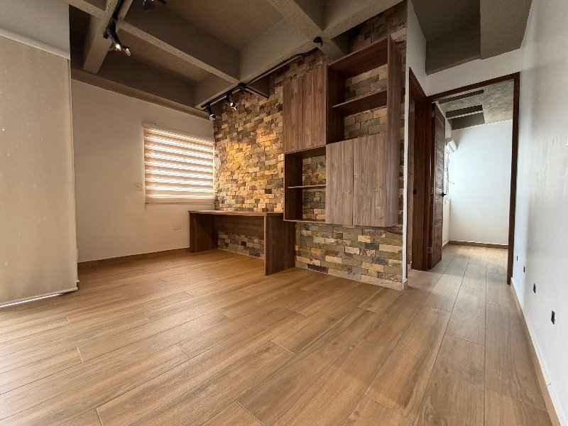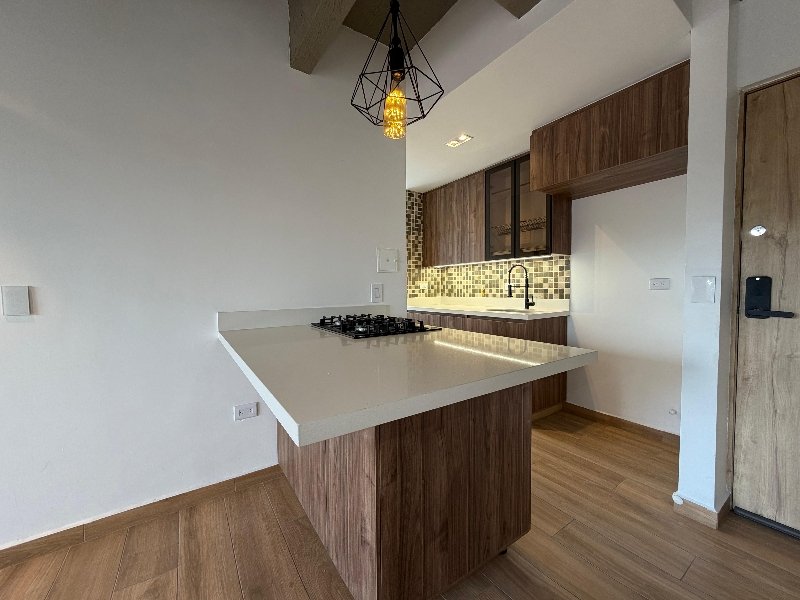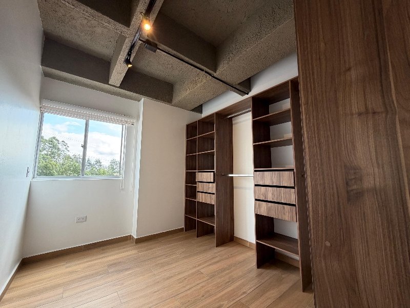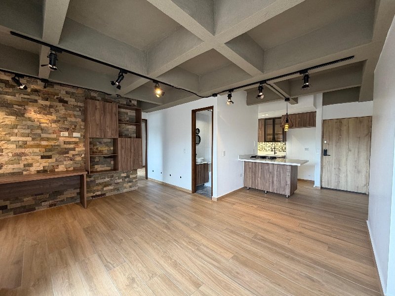 Apartamento de 62 m² con acabados en porcelanato tipo madera y balcón de 5 m². Cuenta con 2 habitaciones, 2 baños, sala comedor y un espacio de estudio con biblioteca y escritorio. Cocina integral con capacidad para nevecon, zona de ropas y parqueadero cubierto. Incluye luces inteligentes y admite mascotas. No se alquila cuarto útil. Estrato 4.Ubicado en unidad cerrada con portería 24 horas, ascensor por torre, zonas verdes, gimnasio, salón social, área de juegos infantiles y sauna. También cuenta con acceso para personas con movilidad reducida.
