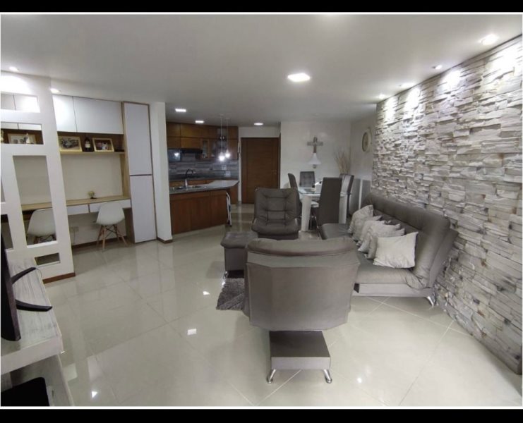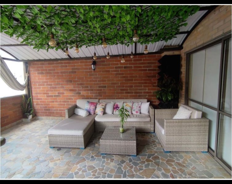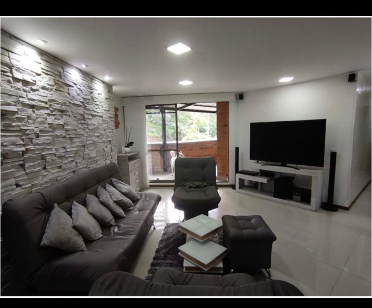 Apartamento de 3 alcobas y tres baños,Lindo apartamento en Sabaneta, con terraza cubierta ideal para tener mascotas hacer BBQs y descansar. La pared principal de la sala está hecha en un piedra que le da un toque rústico y elegante, El domo que cubre toda la terraza es termo-acústico en un material que no produce calor ni ruido Unidad completa , gran piscina .