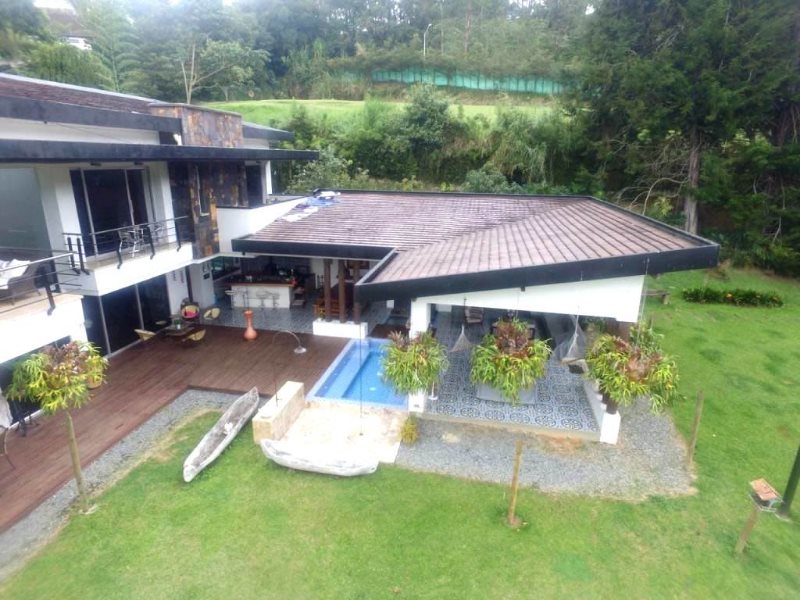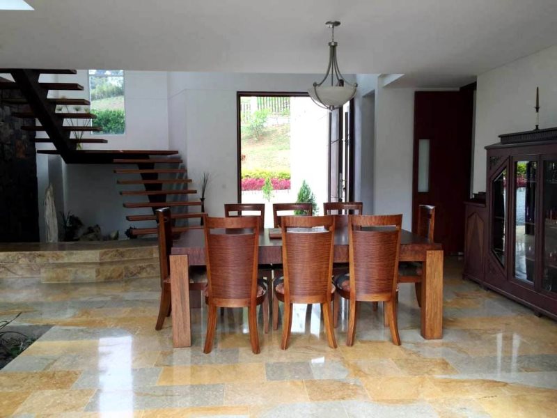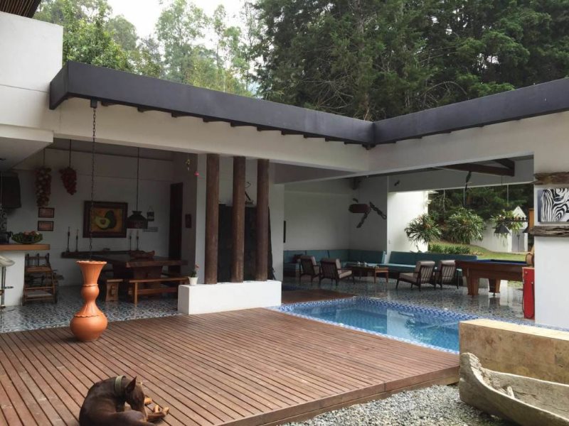 Casa campestre disponible para la venta en Envigado Antioquia sector el Escobero, área de lote 2.555 metros, casa en dos niveles con un área de 600 metros excelentes acabados diseño por la reconocida firma de FELIPE TRUJILLO ARQUITECTOS comodidades 4 alcobas todas con baño y vestier, tres alcobas con balcón, 2 salas, comedor independiente, cocina integral, patio, cocina adicional con fogón y horno de leña y además BBQ, jacuzzi para 25 personas, espejo de agua, estadero zona de juegos, deck en madera, chimenea a gas, cancaha de voleibol. garaje cubierto para tres vehiculos y descubierto para 20 vehiculos, hermosos jardines con frutales, casa de jardinería tipo americana apartaestudio o casa mayordomo zona residencial, buenas vías de acceso y buen servicio de transporte público.