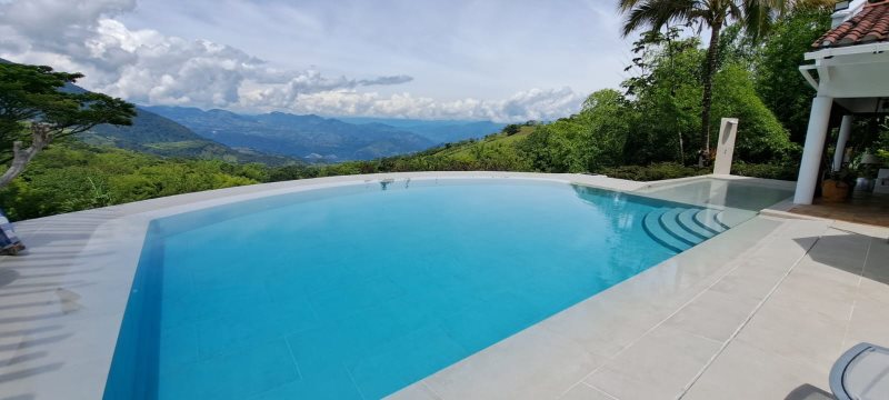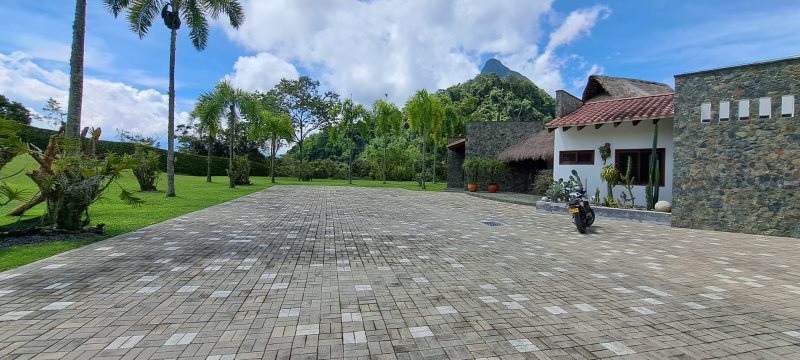 Vendo hermosa finca en parcelación sobre la vía que conduce de Bolombolo a Venecia, cerca al Cerro Tusa con magnifico clima, 64.000 m2 de lote, casa principal de 587 m2 con 3 alcobas mas servicio, 5 baños, patio de ropas, kiosco, piscina climatizada, turco, parqueadero de 490 m2, casa de mayordomo de 102 m2, tanques de almacenamiento de agua, planta de tratamiento de agua, 2 tanques de almacenamiento de agua de 1500 litros cada uno, 300 arboles frutales de mandarina y naranja, porteria