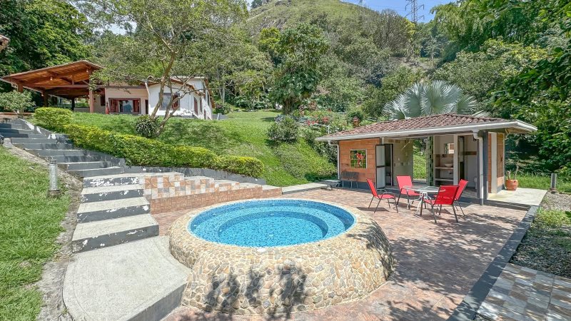 Vendo finca en Barbosa vereda la Isaza, vía de acceso pavimentada y placa huella a tan solo 300 metros de la doble calzada, potencial agrícola, glamping o finca de descanso rodeada de naturaleza, consta de dos matriculas inmobiliarias, posee una casa principal de 194 m2 con 5 alcobas, 2 baños, salacomedor, cocina, cuarto útil, casa de mayordomo con 36 m2.Adicionalmente tiene kiosko, zona de asados, turco, jacuzzi y baño para esta zona húmeda. Tiene 2 lagos, arboles frutales y el acueducto es veredal.